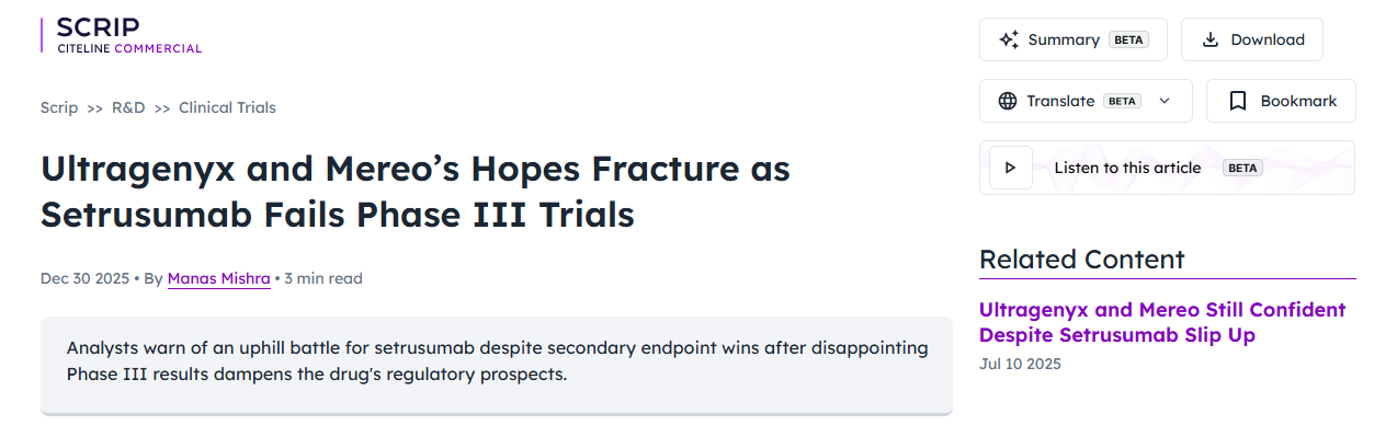 While I’ve been relatively impressed with Ultragenyx and Mereo so far, what happens next will be no less disappointing. It’s critical to never forget that our best interest is NEVER their priority. It is always profit. Just as a developer who renovates a historic building, draws community members in with promises of revitalization, then abandons the project when the luxury condos don’t sell - leaving behind raised expectations and an empty shell - the writing is already on the wall that Ultragenyx and Mereo will move on.